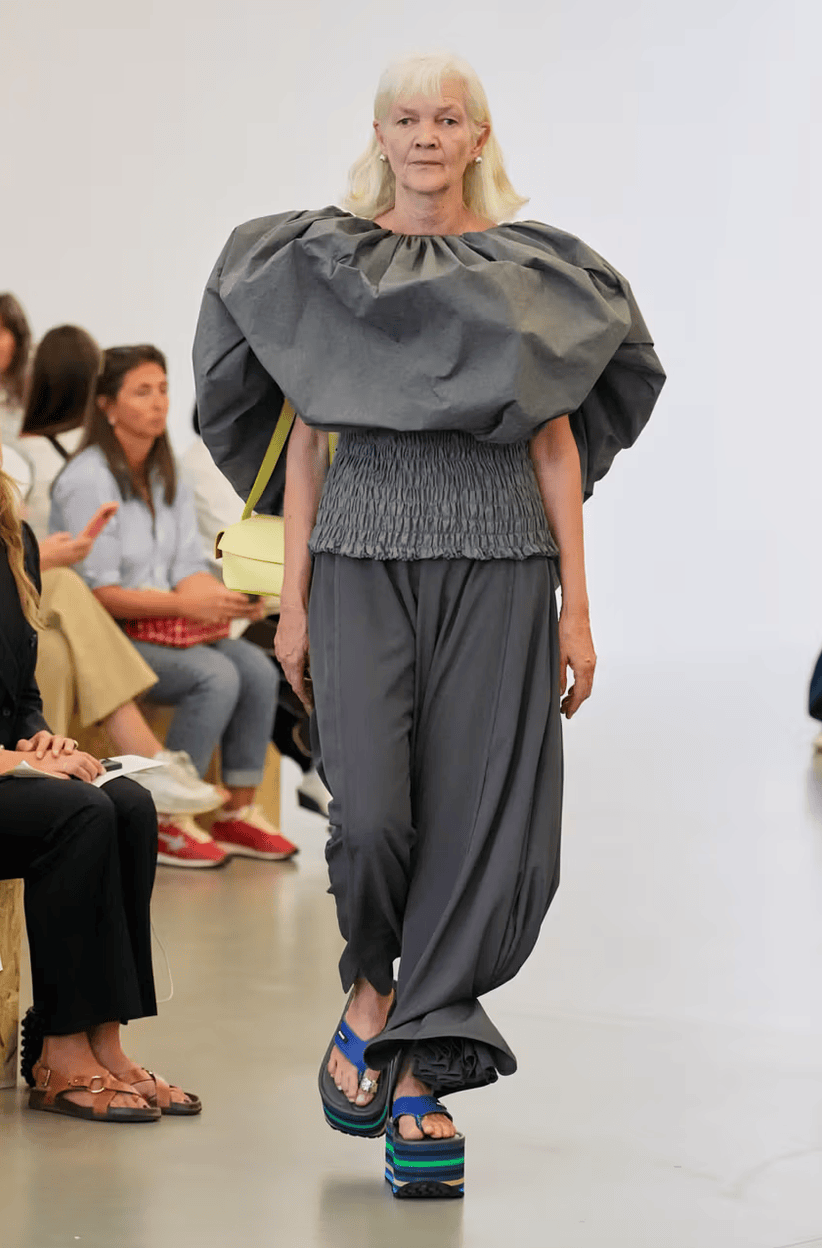 Finally, regarding the casting, Sunnei’s statement was clear: age does not matter when it comes to style. The cast of all older models brought a breath of fresh air to the industry’s youth-driven obsession. Rizzo and Messina’s decision not only symbolised a celebration of the passage of time but also highlighted an often-overlooked demographic—one with significant spending power. By aligning with older individuals, the brand subtly acknowledged where the real financial influence lies. The older generation has the means to invest in timeless, quality pieces, and with this collection, Sunnei has proved themselves worthy of this investment.