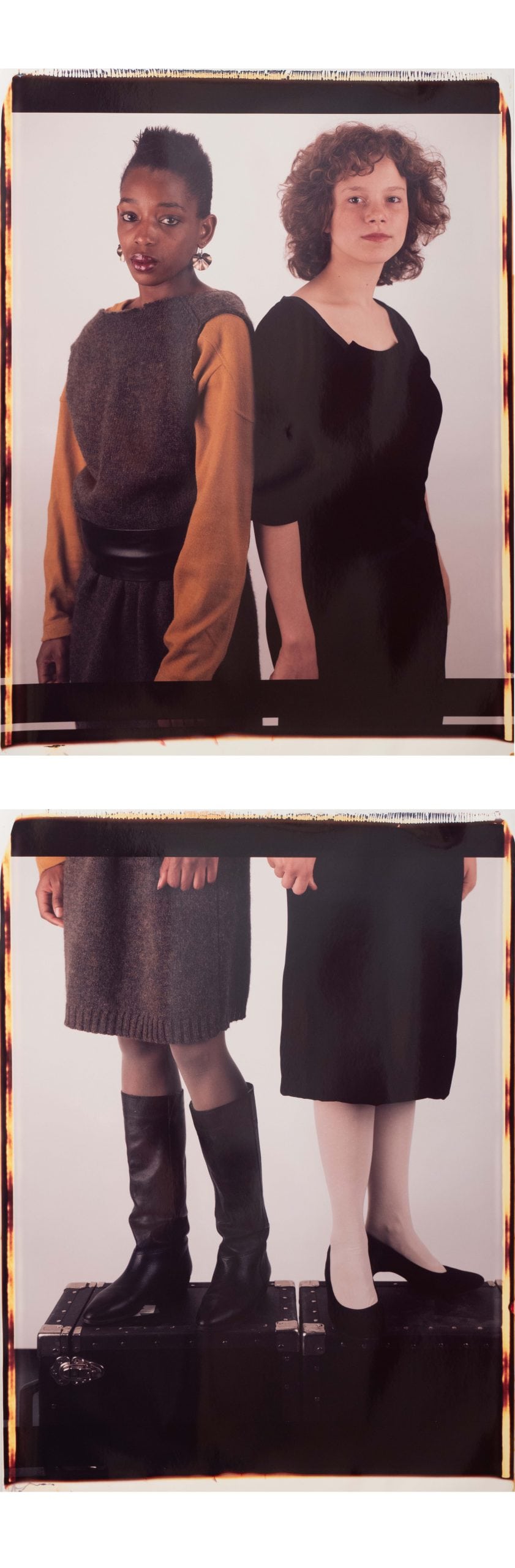 In a diverse artistic landscape, our team’s favourite works offer a striking insight into the edition. James Collins’ collage, ‘Watching Suzanne: Domestic Dialogue’ (1977, Estate of James Collins, Courtesy England & Co), traces a glimpse of daily life between two lovers within the domestic walls, suggesting the ambiguous nature of intimate relationships. András Ladocsi’s work reinterprets the tradition of representing the human body, a recurring subject in photography, emphasising a delicate and non-idealised balance. Zuzanna Janin and Donna Trope explore the theme of identity through juxtaposition and analysis, while photographers such as Koto Bolofo and Fred Herzog bring attention back to the relationship between the figure and the environmental setting.