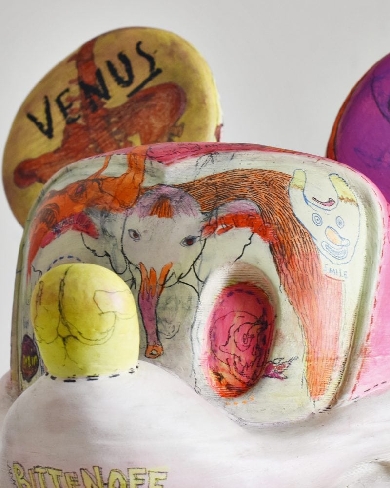Across the media, Zucconi maintains a sensitivity to tactility and movement. Drawing extends to fabric; fabric informs sculpture; sculpture returns to line. The result is a porous practice in which materials dialogue and evolve, guided by a keen attention to nuance and transformation.