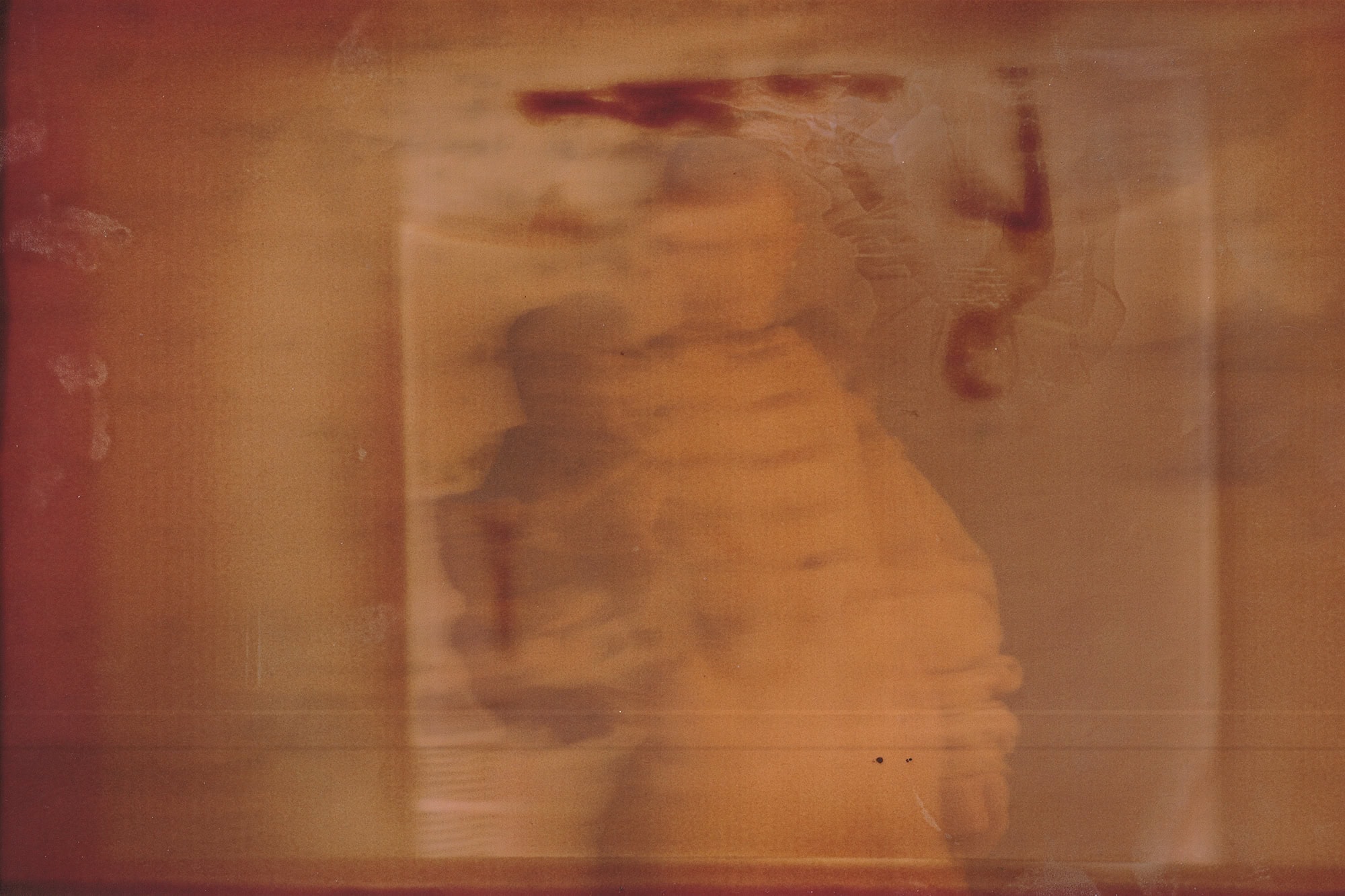Intermittent projections interrupt this fragile archive. Composed of fragments of iPhone footage edited to resemble compulsive scrolling, the moving image mimics the rhythm of a digital feed, rapid, hypnotic, and difficult to escape. During pauses in the projection, viewers are invited to sift through the hanging prints, physically interacting with the work and uncovering images in various stages of decay.