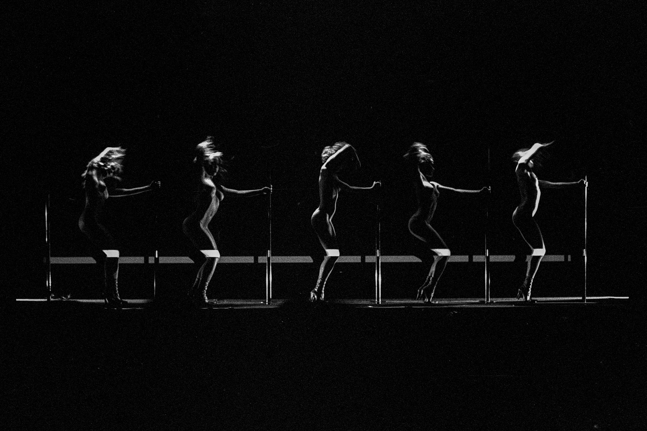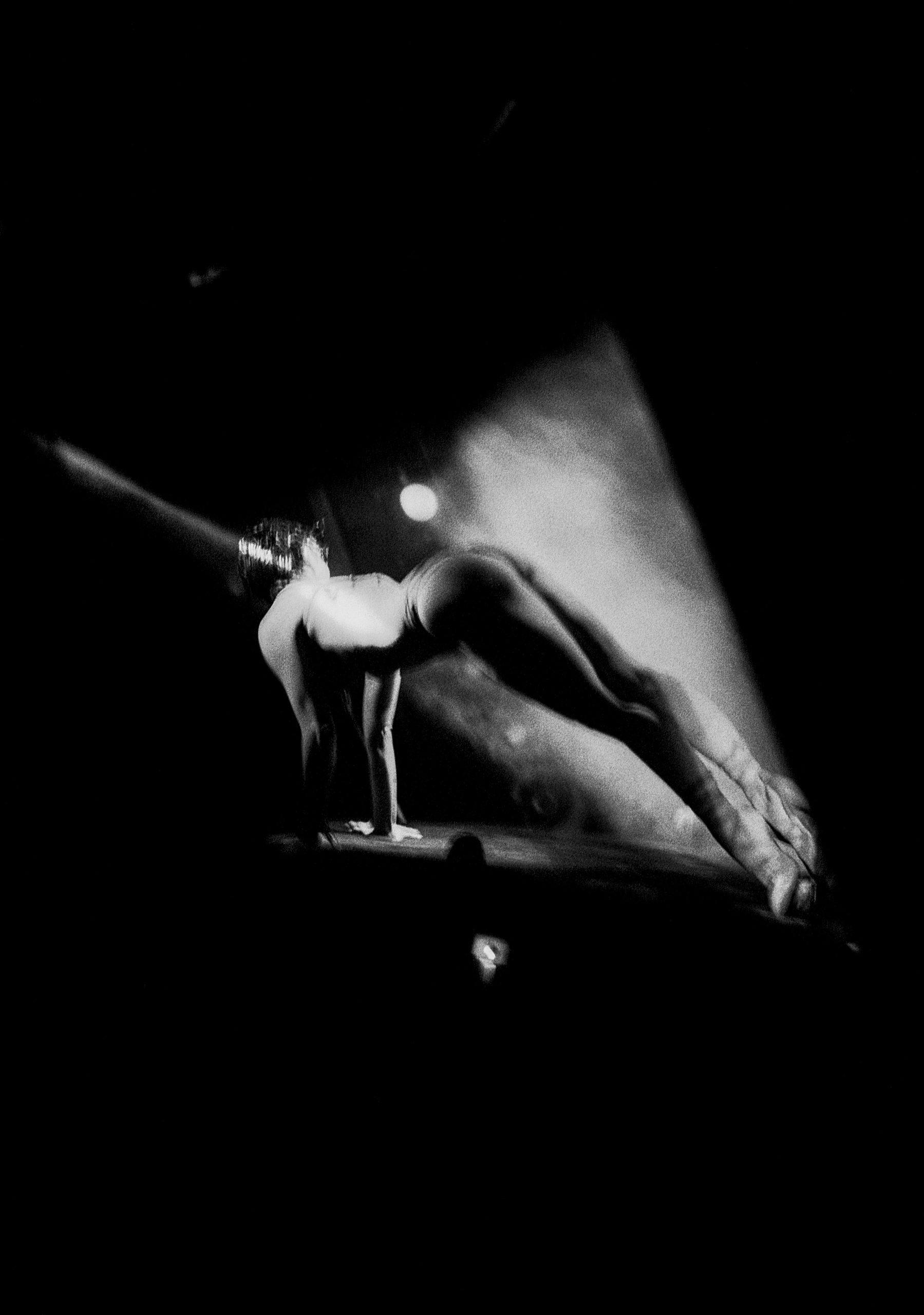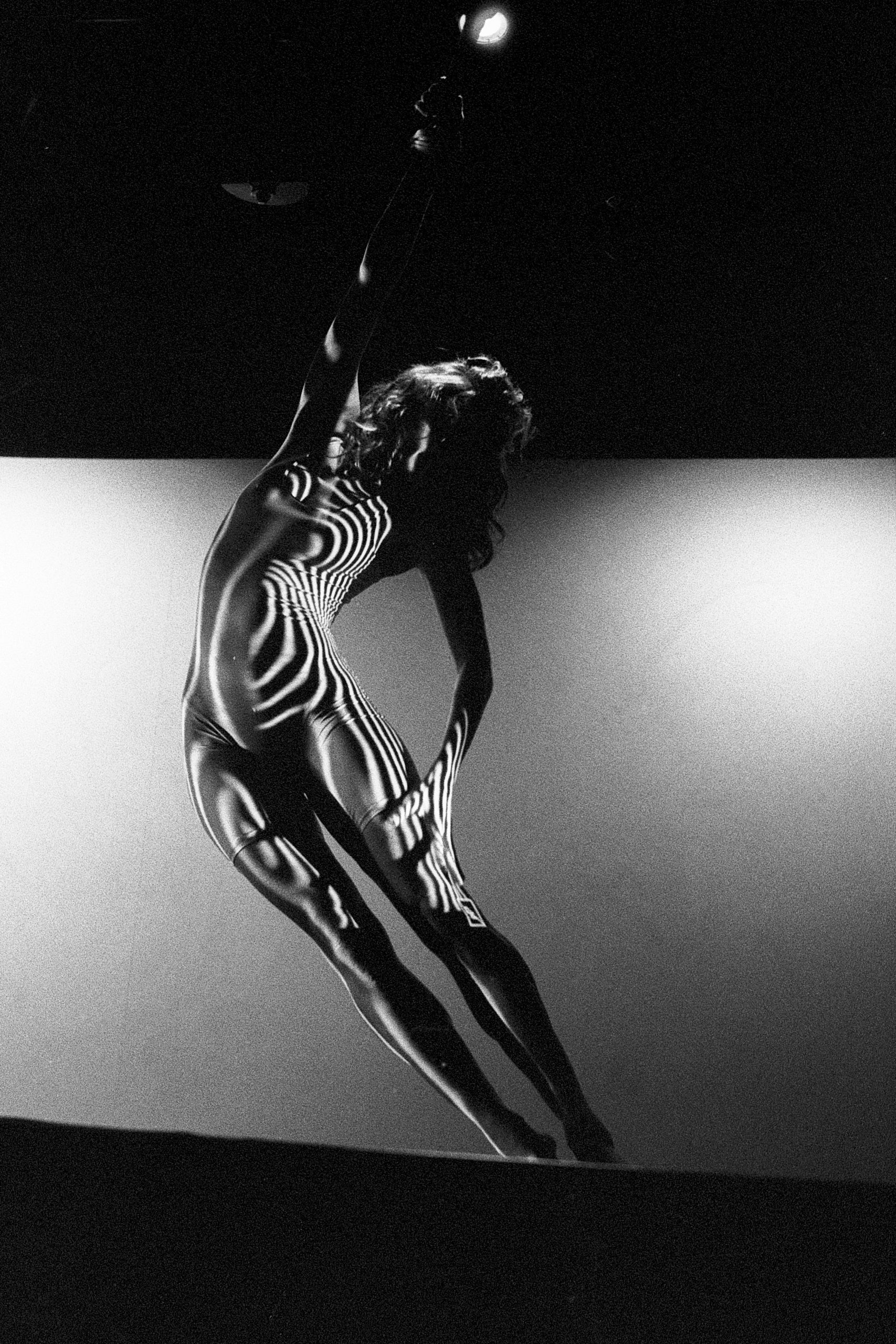 The lens looks where the eyes of the audience cannot see. Troitskaia gives us an unprecedented view of the dressing rooms, the waiting and the gestures repeated with ritual precision. Her photographs portray naked bodies immersed in liquid shadows, reflected in mirrors illuminated by flickering light bulbs. Black and white, with its imperfect grain, freezes time and transforms every shot into a dream. It does not seek seduction, but rather the calm tension that precedes movement. The dancers appear as priestesses of a contemporary ritual, aware that beauty is not just an act, but a construction. In one of the images, a dancer stretches out in a circular beam of light, as if trapped in a private orbit. In another, a body is crossed by strips of light that break it down, as in an avant-garde optical experiment. Here we see echoes of Man Ray, but also the hypnotic coldness of Guy Bourdin or the concentrated melancholy of Nan Goldin’s backstage.