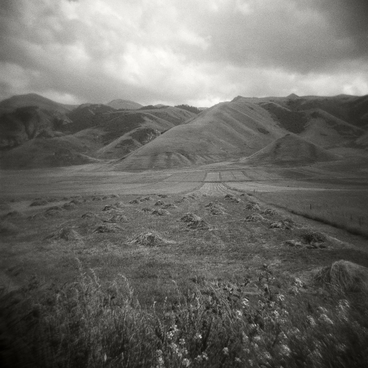 I travelled light, carrying only the bare essentials and used a simple plastic holga to record my journey. As exhilaration merged with a state of exhaustion, I became less aware of the sublime beauty of my surroundings and more focussed on simple details of the landscape. A telegraph pole or eroded mausoleum would hold me in their spell and these are the images I started to capture.