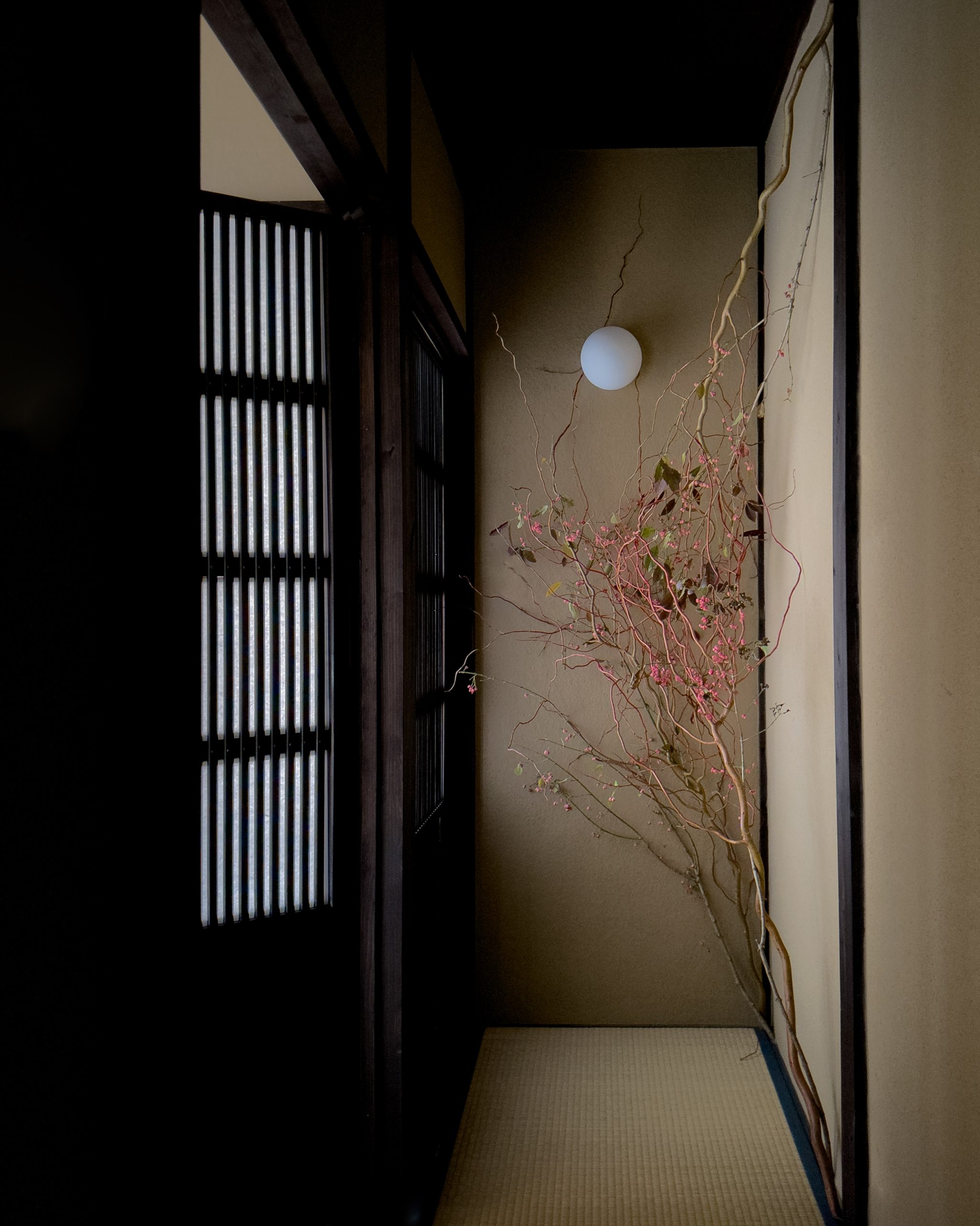 Set within a historic traditional house, Chowa unfolds as a sequence of compositions that respond directly to the architecture. Each installation investigates equilibrium not as a fixed condition, but as a dynamic interaction between natural elements, gravity, and the surrounding space. Branches, stems, and wild materials are arranged in ways that allow tension, weight, and movement to become visible, transforming ikebana into a spatial and sculptural language.