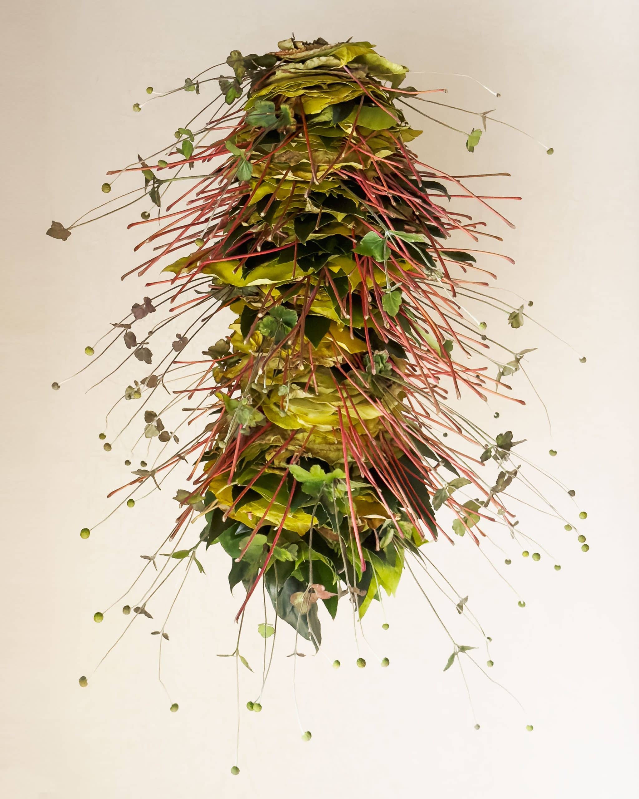 All botanical elements are locally foraged or sourced from the surrounding landscape. This process grounds each composition in its environment, creating works that are temporary yet deeply connected to place. The result is an immersive experience in which viewers are invited to slow down and engage with subtle relationships between form, space, and nature.