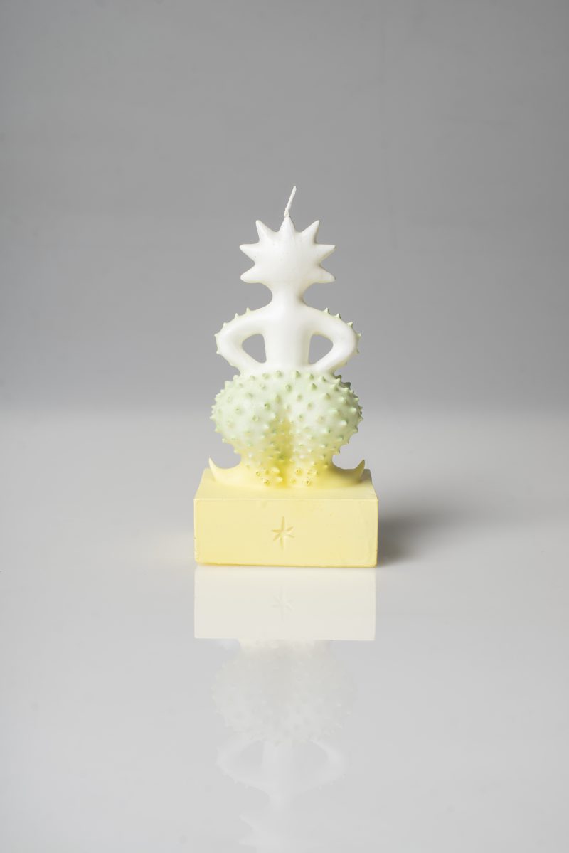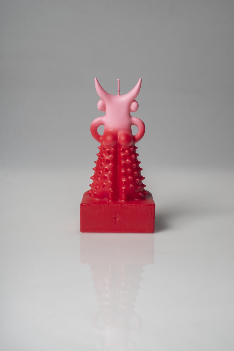 The Debut collection , launched on March 12th in Milan, called “domestic spirits” consists of five sculptural candles, reflecting. Crafted in Cereria Introna, an artisanal workshop active in Bari since 1840, the series aims to portray a cycle from Monday to night, reflecting a non linear interpretation of time, through a design that blends “archaic sacredness” with contemporary influences like the queer culture and the post-digital imagery.