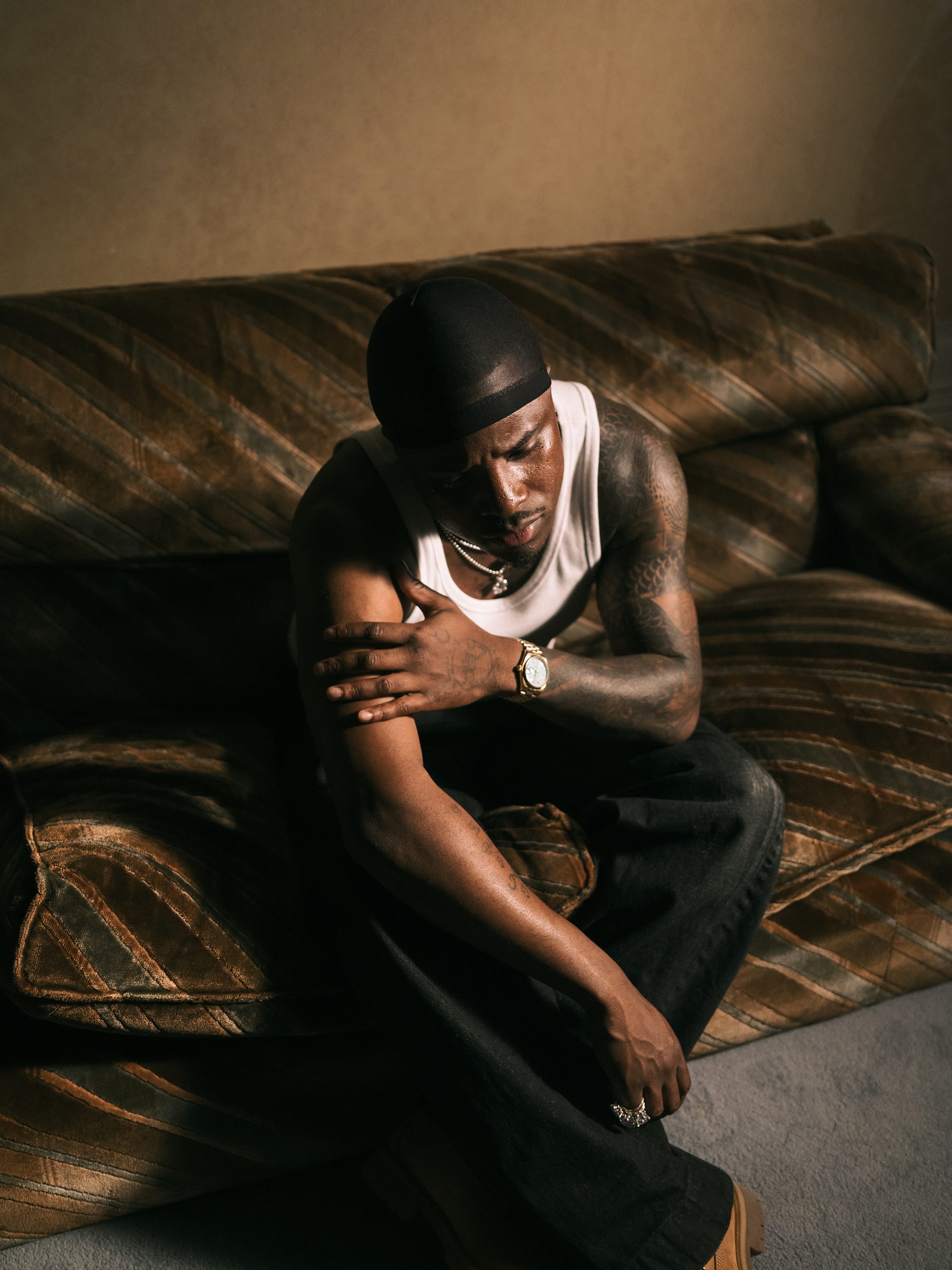.idk.: At the end of the album, we kind of see that I am, I have certain regrets, which is something that a lot of people don’t like to admit, especially where I’m from, no one likes to regret anything, but I do, I regret, how I made people feel when I essentially had their lives in my hands, and they were very afraid, you know, those are some of the things that led to me being incarcerated. Me being 17 years old at that time, I don’t think I had an understanding of what life actually meant, not only to myself, but to other people. I was kind of numb to it. And as I got older, I started to feel the pain of those people who were on the other side of, you know, to say the weapon. And, I started to gain a certain level of compassion. And I think that the album, when you listen to it, starts off quite aggressive, and with a lack of remorse. And then, as it starts to, the layers start to peel back, you start to see certain levels of vulnerability, and where I do actually care, and then why I did some of the things that I did, and then how I feel today, and what I look to do later. So that journey is expressed, throughout the body of work, the best way that my heart would allow me to express it.