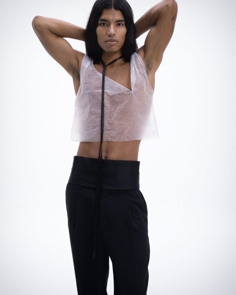The protagonist of the story is Yordi Santiago Garavaglio, whose presence appears natural and authentic. In the various poses, the model does not interpret a character, but simply inhabits the space. His every movement seems to spring from an inner thought, offering an image of himself that is confident and calm.