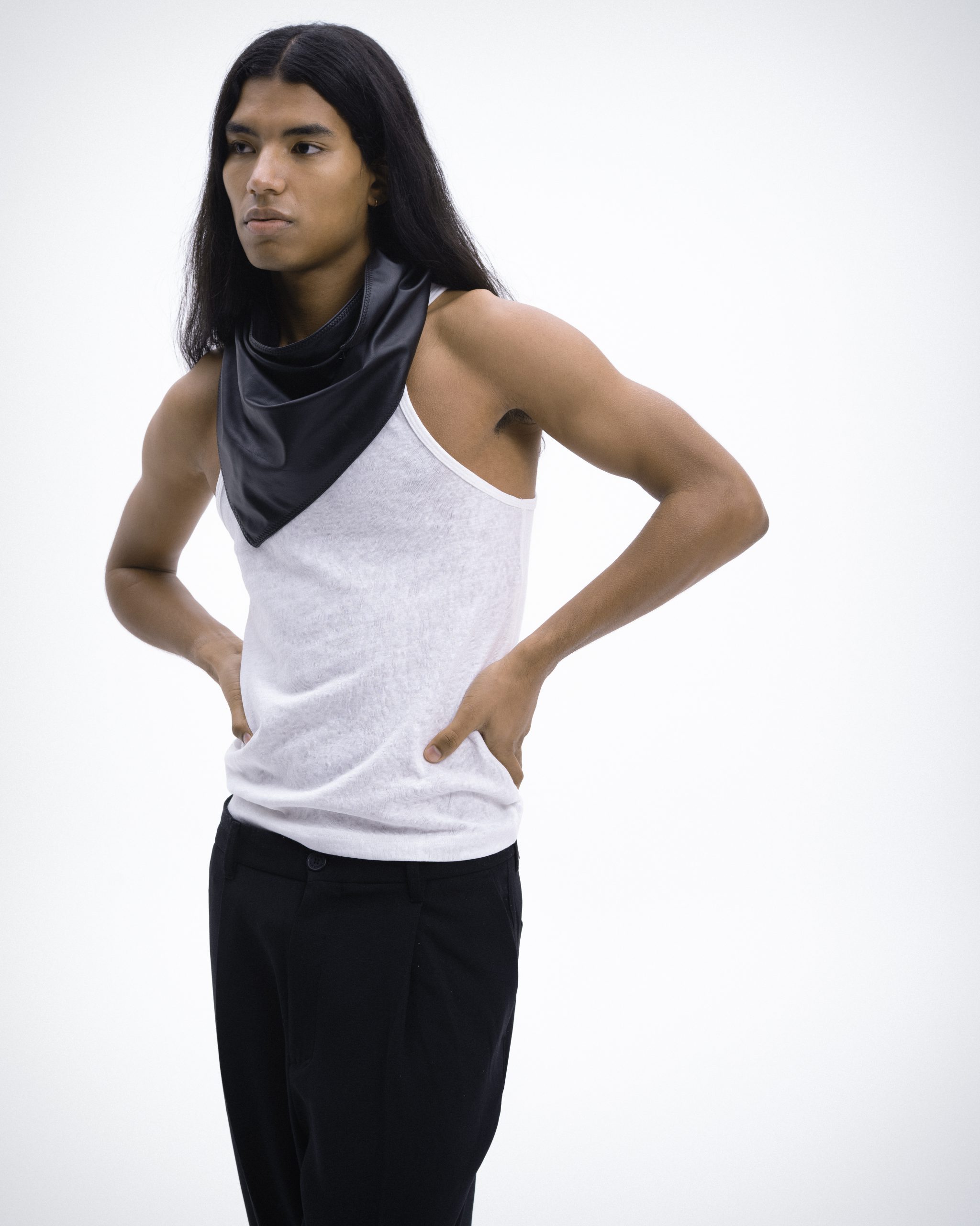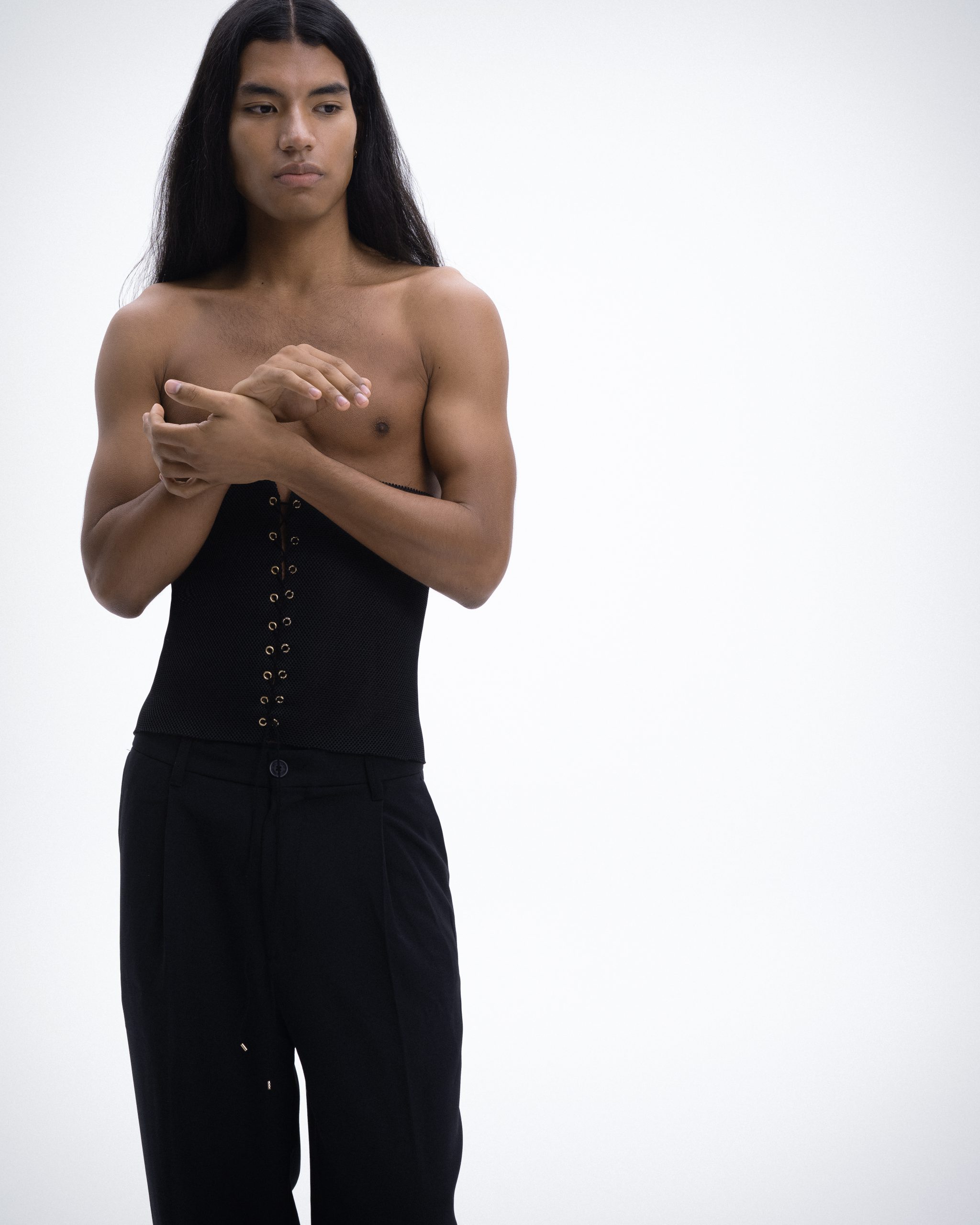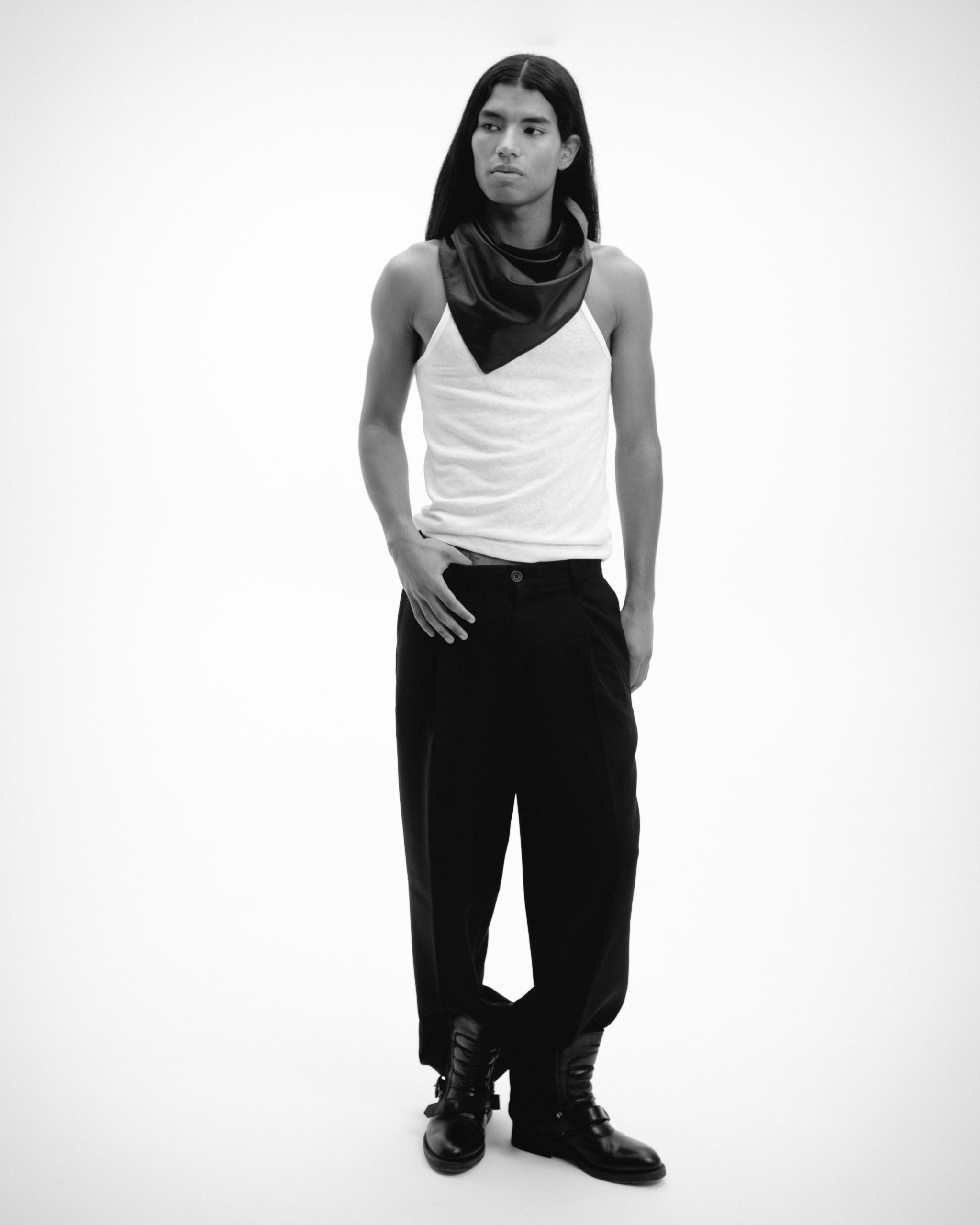 The protagonist of the story is Yordi Santiago Garavaglio, whose presence appears natural and authentic. In the various poses, the model does not interpret a character, but simply inhabits the space. His every movement seems to spring from an inner thought, offering an image of himself that is confident and calm.