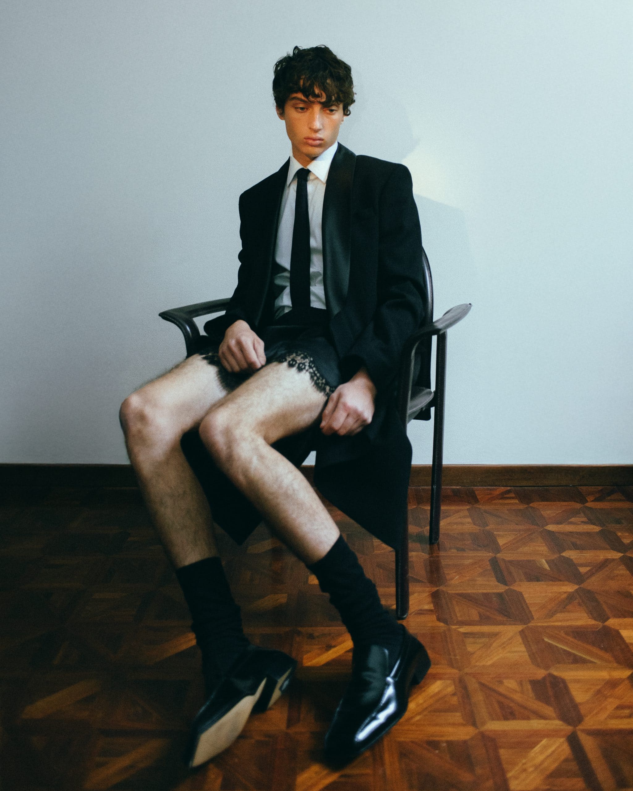 Denim from Levi’s and HG LF grounds the body in reality, while Marsell footwear keeps it close to the ground. Subtle glints of Swarovski catch light briefly, then disappear. Christian Boaro and Bonfilio contribute texture and memory, clothes that feel carried rather than worn. Nothing feels new, nothing feels nostalgic — everything exists in a state of quiet continuity.