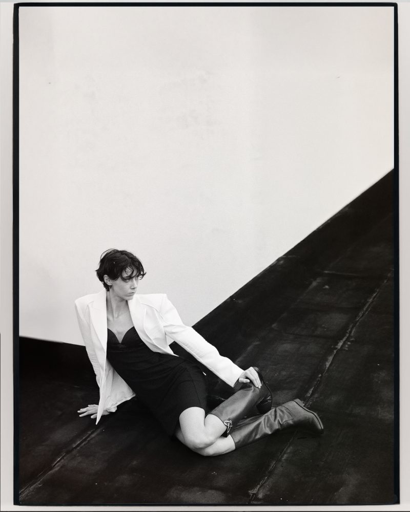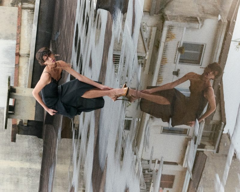 The styling by Linda Ripa proposes a layered femininity. Masculine jackets, flowing dresses, chains that slide over the body, heels that echo on unsuitable surfaces. Colour also contributes to the contrast. The shades are frequently desaturated, cold, interrupted by sudden accents: an intense blue, a white that defines the space, black that absorbs light. Magazzino does not represent women as muses but as active presences that reorganise space through their bodies. An editorial that uses fashion photography to address themes such as occupation, gesture and transformation, demonstrating how even the rawest environment can become fertile ground for new expressions of grace.