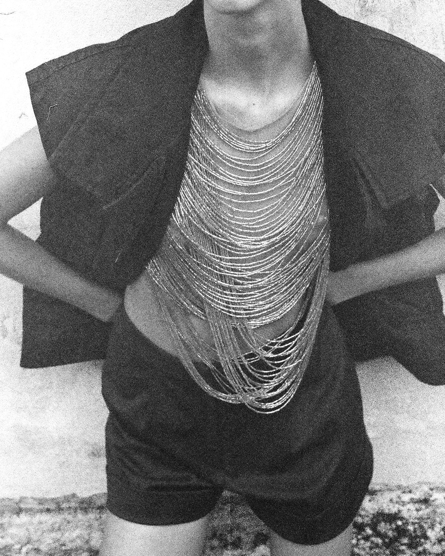The styling by Linda Ripa proposes a layered femininity. Masculine jackets, flowing dresses, chains that slide over the body, heels that echo on unsuitable surfaces. Colour also contributes to the contrast. The shades are frequently desaturated, cold, interrupted by sudden accents: an intense blue, a white that defines the space, black that absorbs light. Magazzino does not represent women as muses but as active presences that reorganise space through their bodies. An editorial that uses fashion photography to address themes such as occupation, gesture and transformation, demonstrating how even the rawest environment can become fertile ground for new expressions of grace.