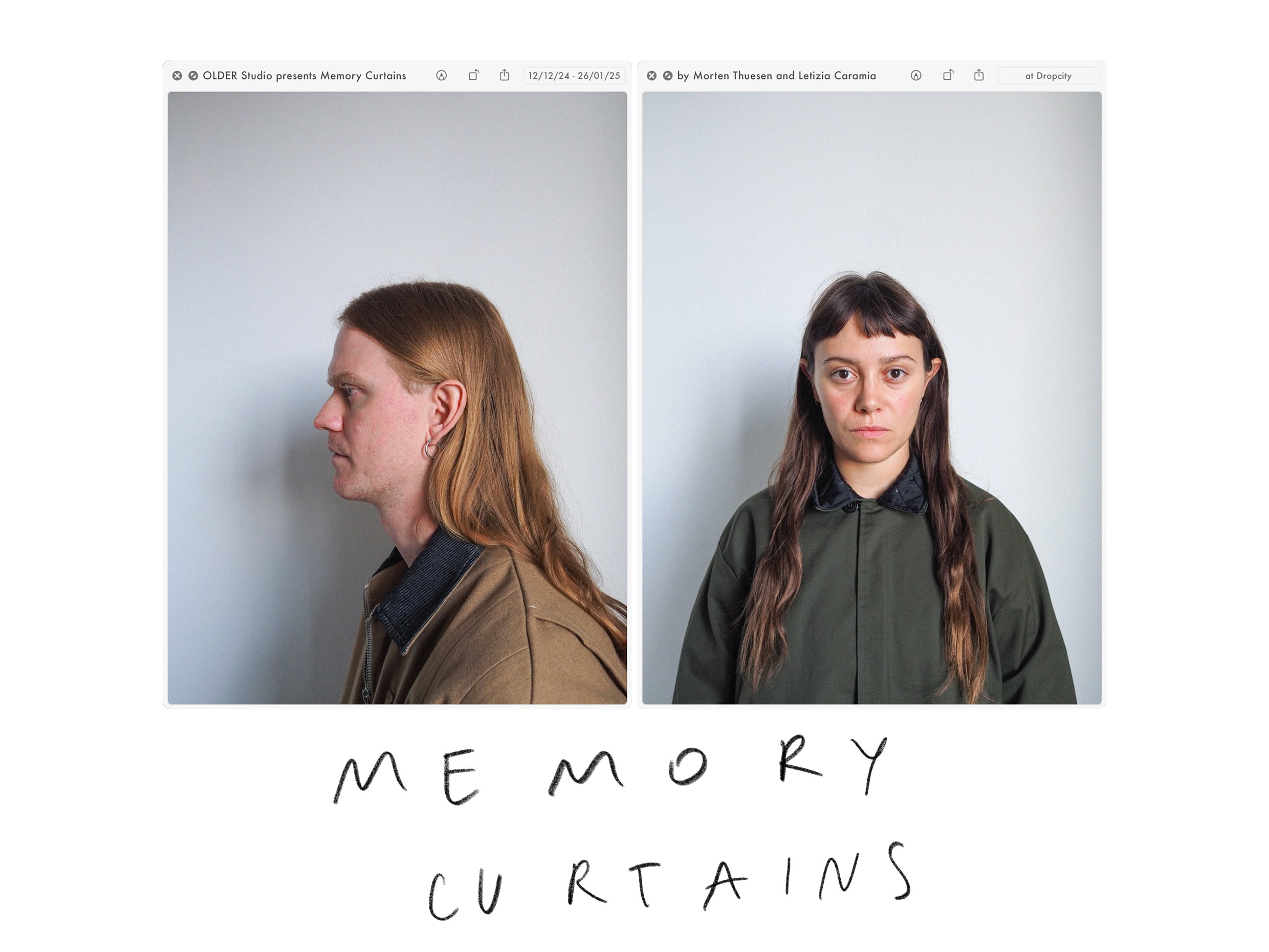“The title Memory Curtains has been a thread in our work for over a decade, evolving quietly until it felt ready to surface. It began as a collaborative photo project and took on new life when we were asked to contribute on a project for which we screen printed an artwork featuring Morten’s motif onto various fabrics. We found ourselves captivated by the raw screens—the essence of the process itself—more than the finished prints. This exhibition marks a shift for us—it’s the first time we’re presenting under our own names, with OLDER as the platform rather than the presenter. This project is deeply personal, born from passion rather than market demand, and reflects who we’ve become through OLDER. It’s a culmination of years of experimentation and a step toward something that feels entirely our own” state Thuesen and Caramia. The exhibition is set at Dropcity, a venue dedicated to exploring, imagining, and testing alternative approaches to design and architecture in the context of systemic global crises; it fosters the emergence of boundary pushing ideas and supports their material realization. Running parallel to the exhibition is a public screen-printing workshop, part of Dropcity’s program, led by acclaimed screen printer Andrea Baldelli. Throughout the exhibition, Baldelli will screenprint a series of motifs by Thuesen and Caramia onto archive rugs and blankets supplied by renowned rug maker cc-tapis.