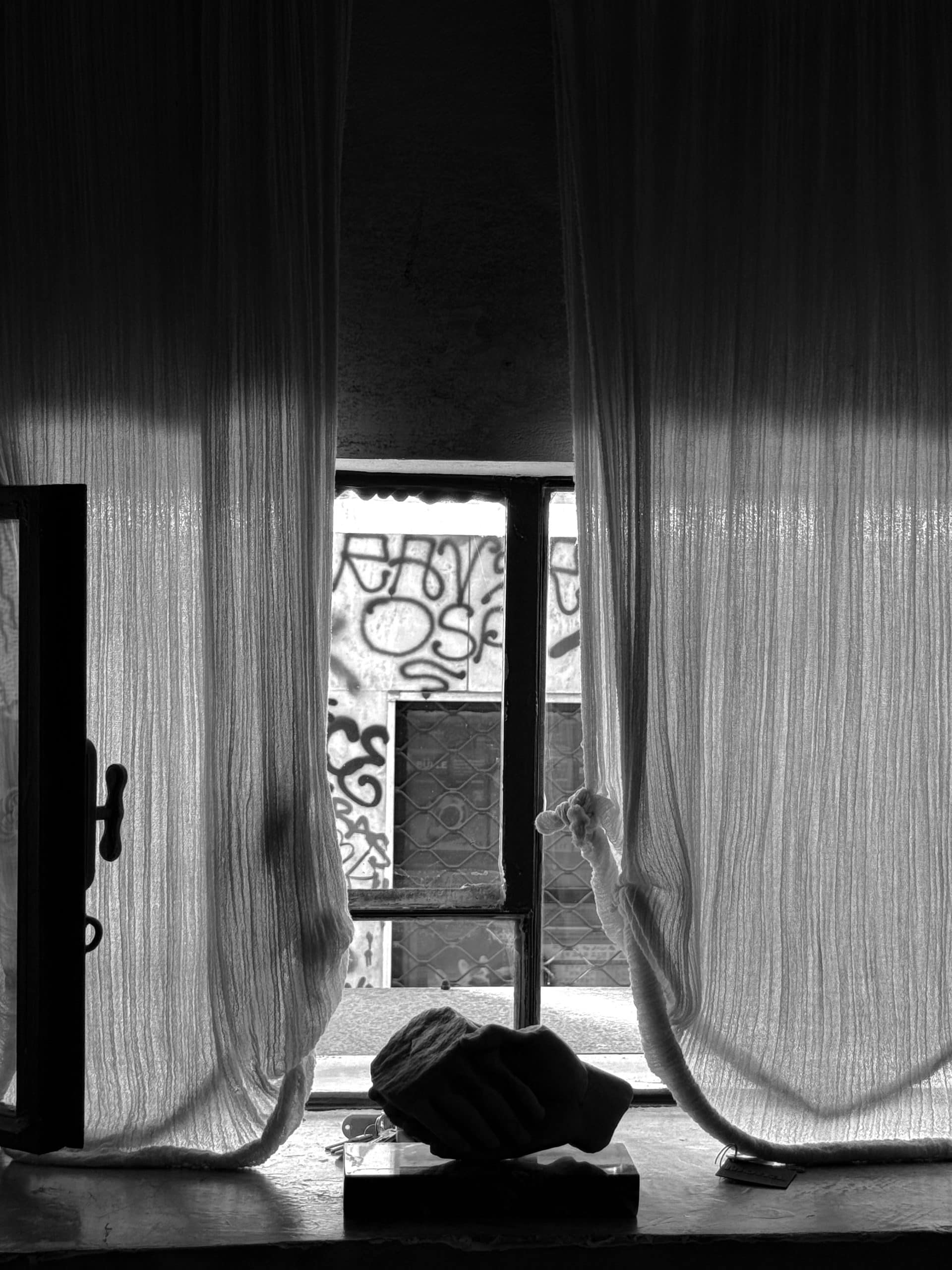 Inside, the city falls away. The rooms — part atelier, part apartment — unfold like a series of well-considered photographs. Textures lead the way: the weight of the cotton bedding, the handwoven throws, the sheer drape of curtains that filter the Athenian light just enough to soften its edges. There’s a clarity in the materials, a transparency in their origin and touch, that makes the space feel honest. Nothing shouts for attention, and yet everything holds it.