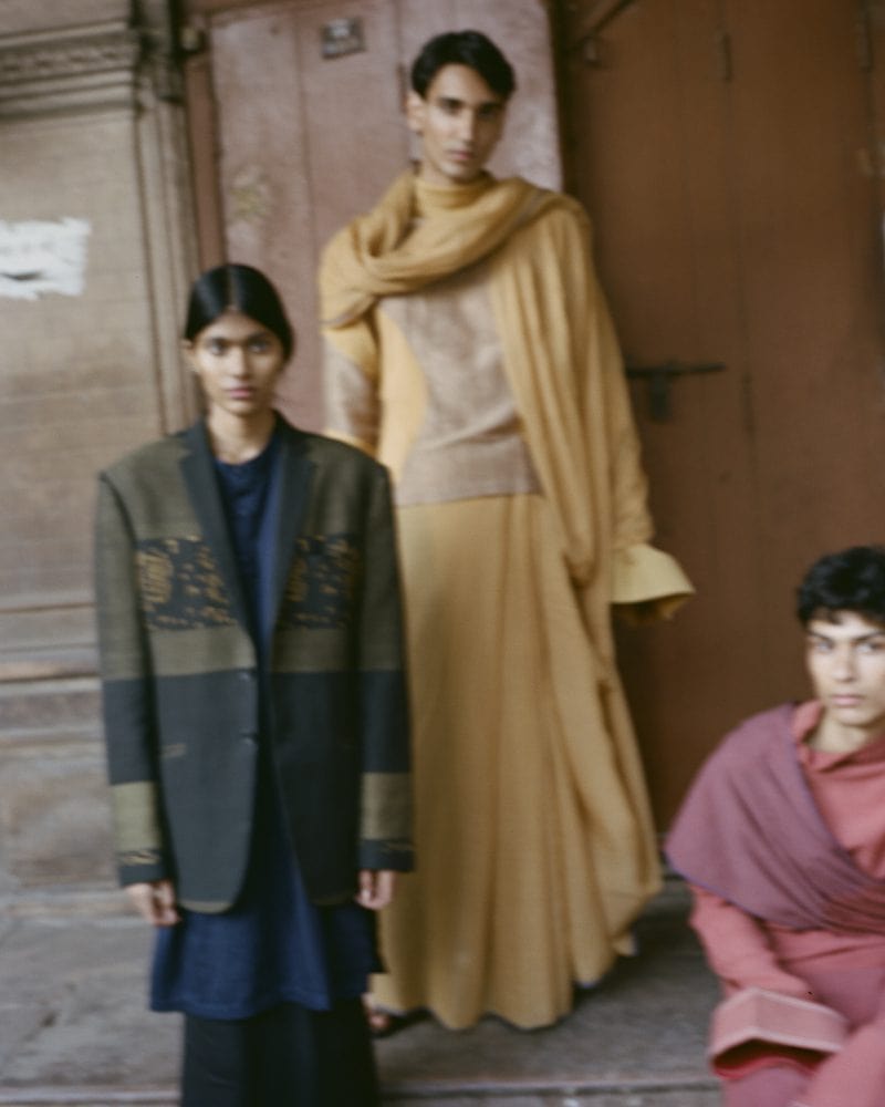 Within this setting, the garments take on a different kind of presence. Finely made and handwoven, they carry their own sense of time—hours of labor, inherited techniques, and the quiet irregularities that come from being shaped by hand. In Old Delhi, these qualities do not stand apart; they resonate. The city, much like the clothing, is defined by accumulation rather than precision. Layers of history, repair, and reuse form a continuity that resists the idea of perfection.