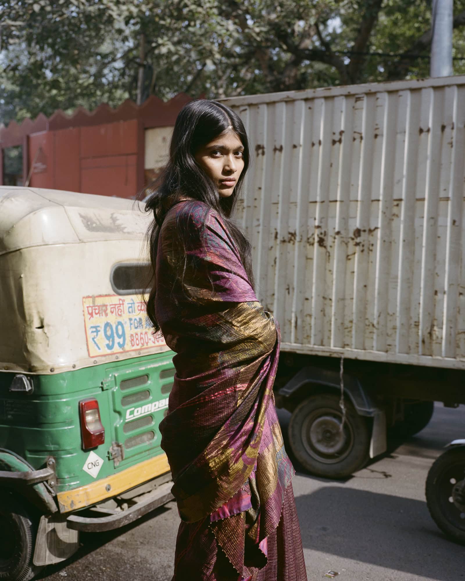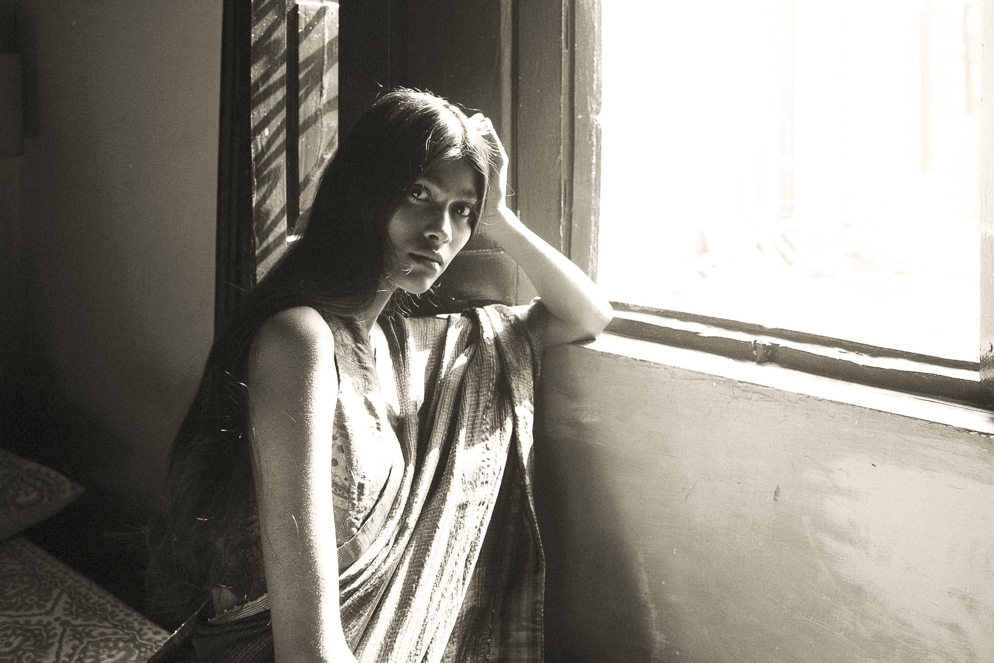 This editorial was conceived within that tempo. Shot in the family home of Arun and Anka and extending into the surrounding streets, the space itself became an active collaborator. Rather than imposing direction, the environment guided the process. Afternoon light entered rooms unannounced, tracing surfaces and softening edges. Sounds filtered through—distant conversations, passing vendors, the subtle movement of a lived-in home—creating a backdrop that could not be staged.