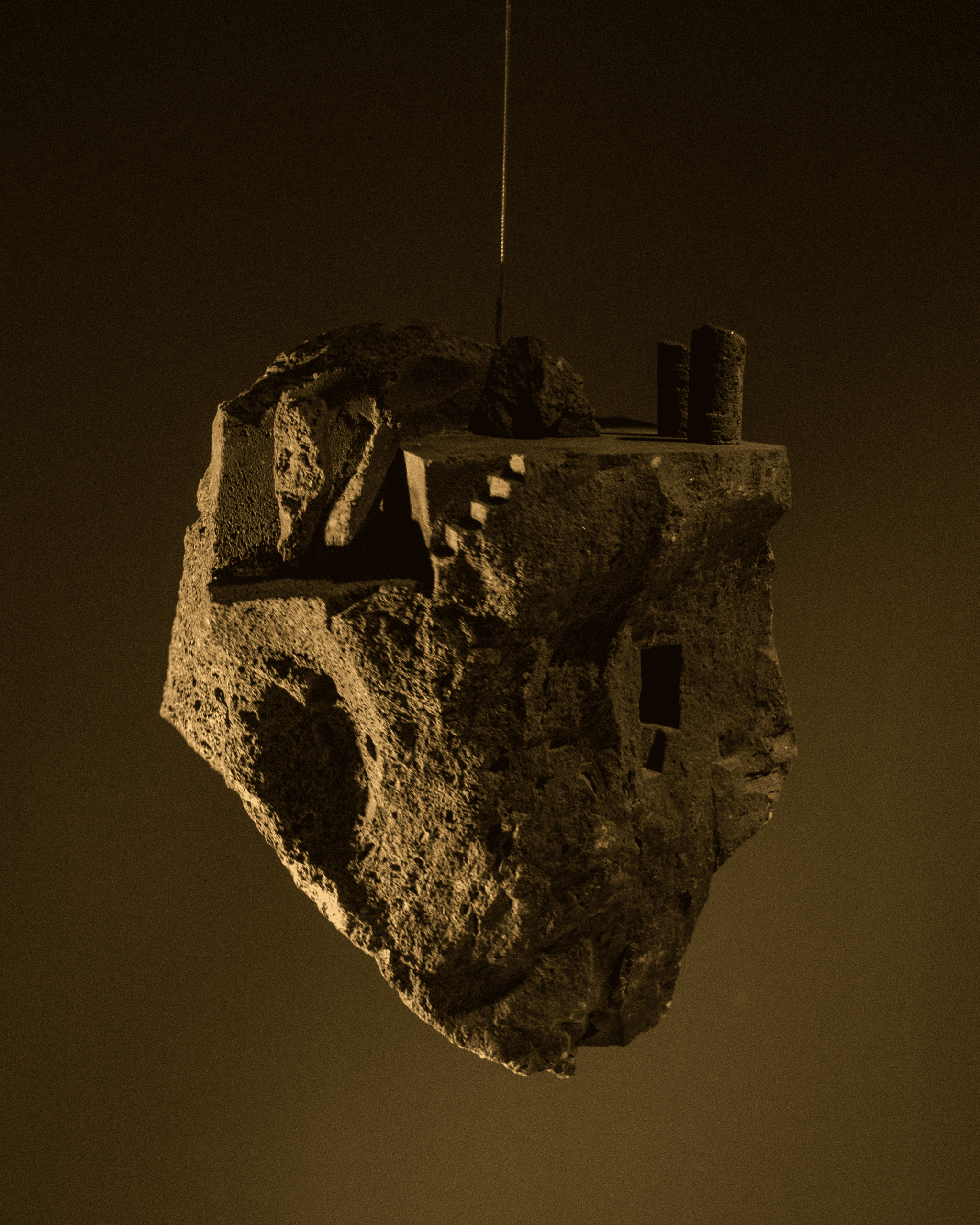 Conceived as a compendium of the Neapolitan landscape, the installation reinterprets three symbolic elements — the volcano, the city, and the gulf — through a dramatic composition of three totemic towers in volcanic stone emerging from a dark, almost magmatic floor. Inside, micro-architectures in glazed lava evoke fragments of the Neapolitan urban fabric, while the rough stone blocks at the base transform upward into sculpted and refined forms, tracing a stratigraphy of geological and architectural references. For Borrell, architecture is an “archaeology of identity,” a space of memory built through light, shadow, and matter, because, as he affirms, “cities are fictions… places sustained by the immaterial substance of human experiences.”