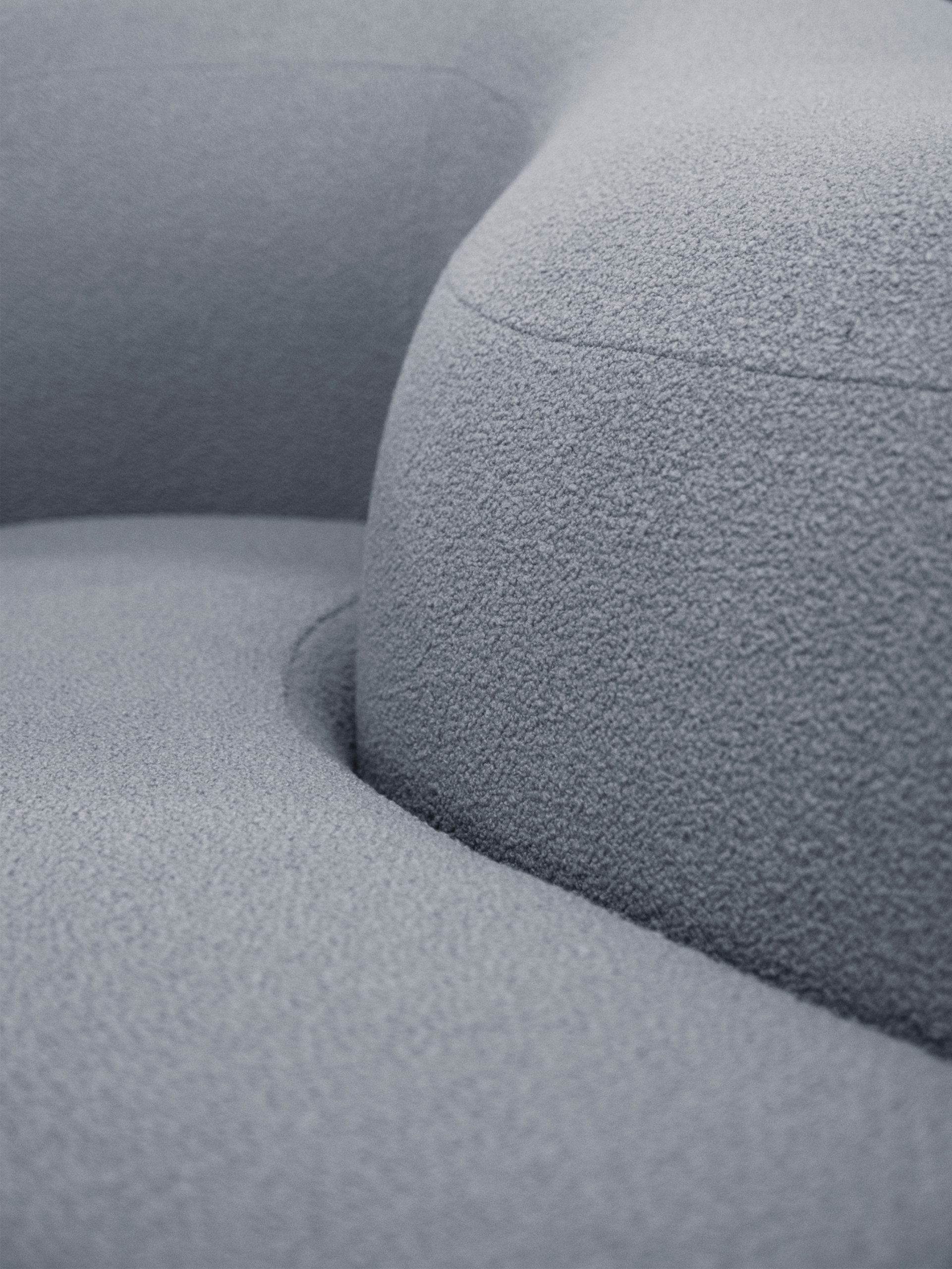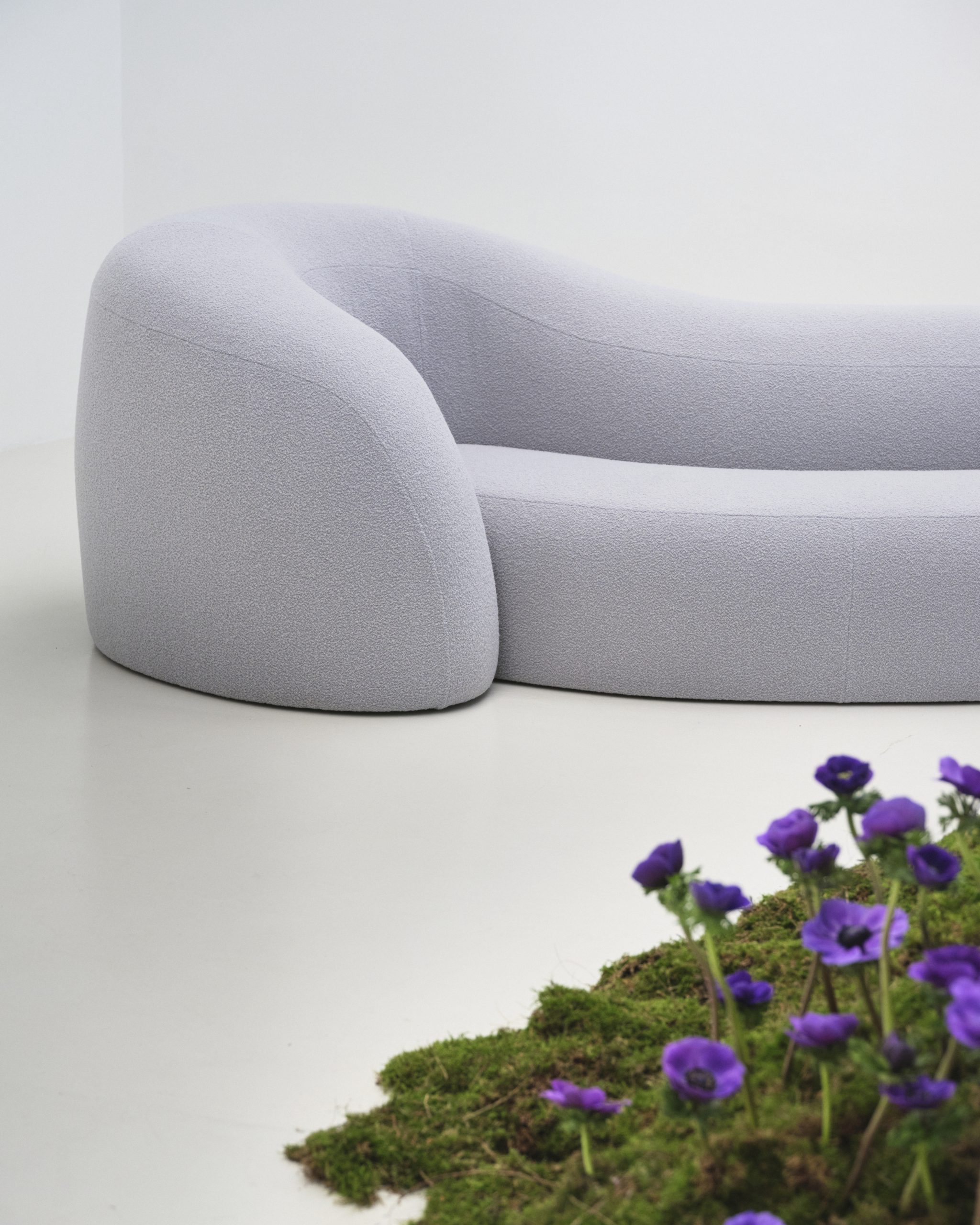 At the heart of the presentation is Trace, a generously proportioned sofa designed by TABLEAU. Conceived to be experienced from every angle, the piece breaks away from the traditional frontal seating arrangement. Its continuous, enveloping curves encourage encounters, conversation, and fluid interaction. Trace becomes more than a simple furnishing element; it acts as a spatial catalyst, shaping the surrounding environment and inviting a renewed sense of proximity.