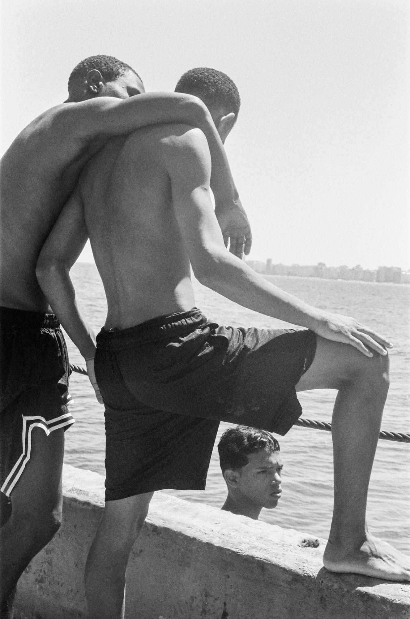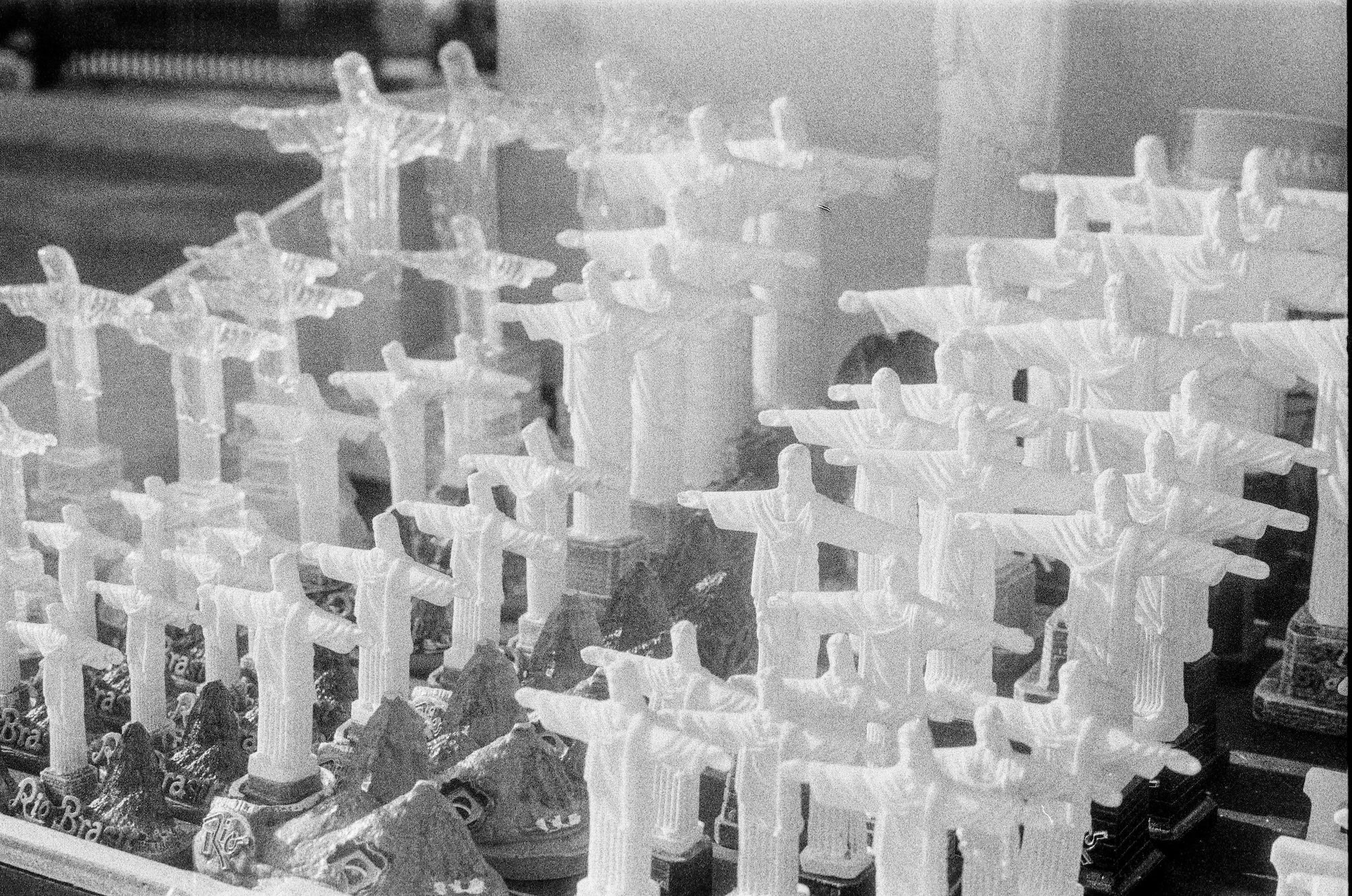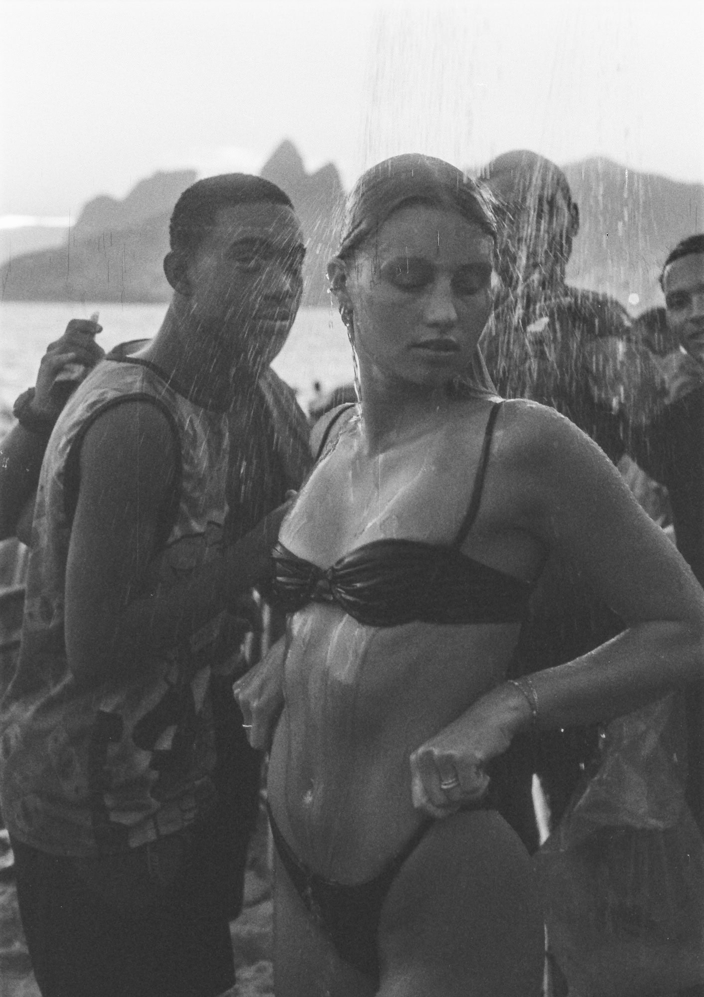 Shot on 35mm, the images carry a physicality that resists separation from their environment. Grain settles into the frame like sand on skin, like salt in the air. Texture builds until it becomes difficult to distinguish where the place ends and the photograph begins. The medium does not just document Rio; it absorbs it. The images feel weathered, as though they have passed through the same elements as their subjects.