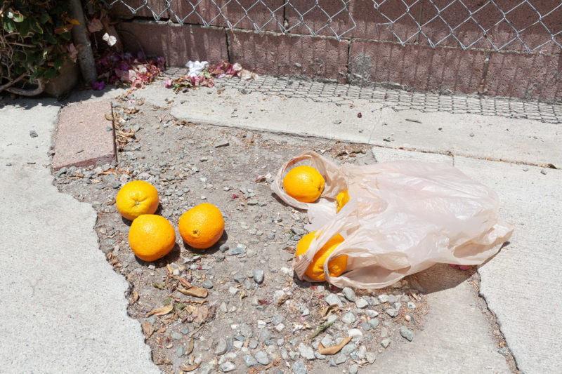 Units contains photographs taken from 1994 to 2017. The images depict a variety of everyday materials and situations, many seen in sets, parts, or multiples. Within such scenes, I looked for a kind of integrity or lack thereof: standards of measurement, materiality, vague questions about the boundaries of entities and experience. A sign swallowed by tree bark, a small collection of funnels, a stove for sale in the sunshine.