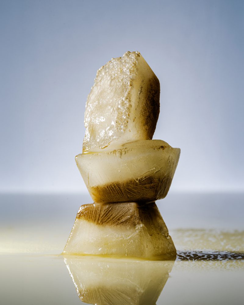 Colors bloom and fold, slow and liquid, curling into themselves, alive with their own weight, their own pulse, into the delicate mushroom powders of Present. In a collaborative project by Fabrizio Vatieri and Veronica Leali, Present Mushrooms are presented with a vibrant sensuality and playfulness in custom glassware by Sophie Lou Jacobsen, Agustina Bottoni, and Traga. In melting ice, upon nashi pears, honey, and pudding, the powders embody the Present philosophy: to slow down, and live in the gentle and wondrous moment.