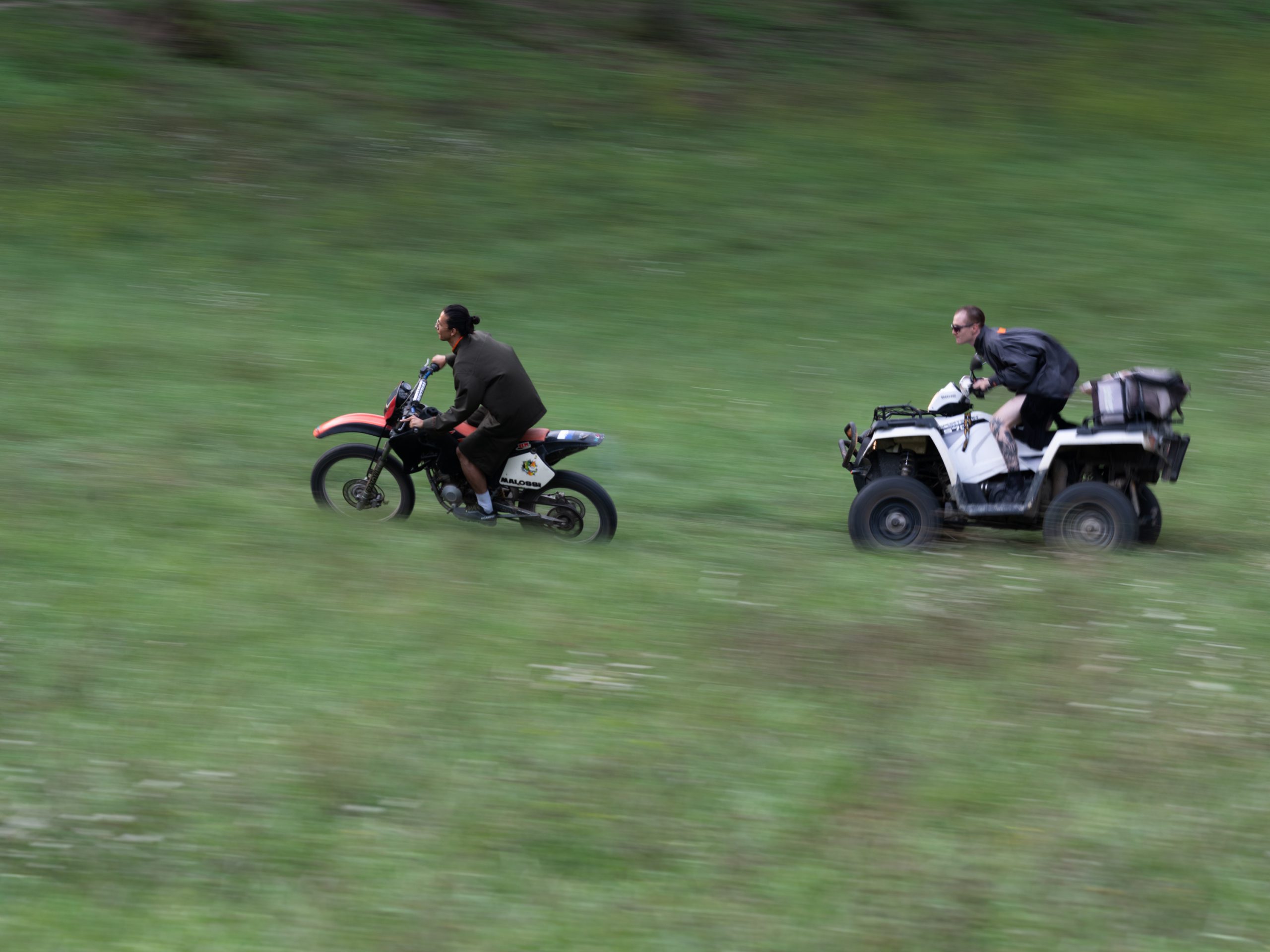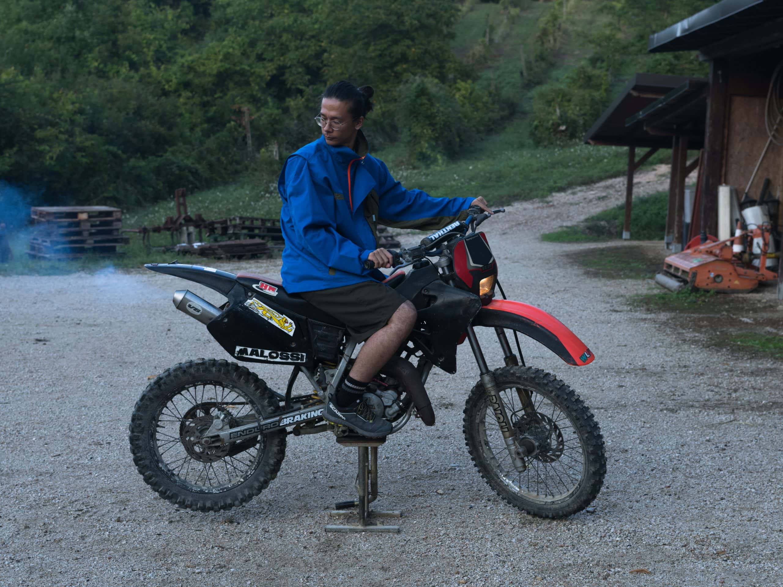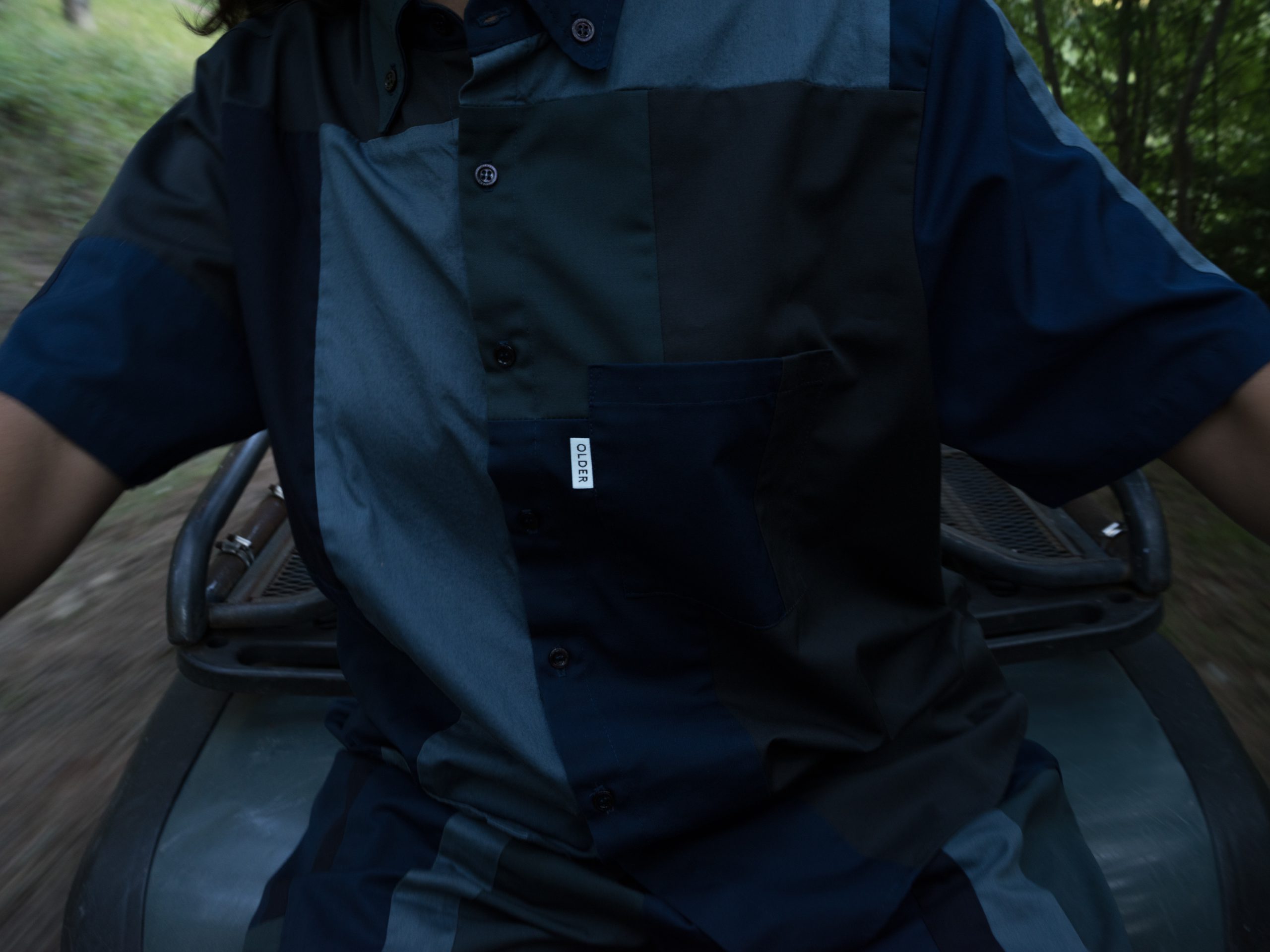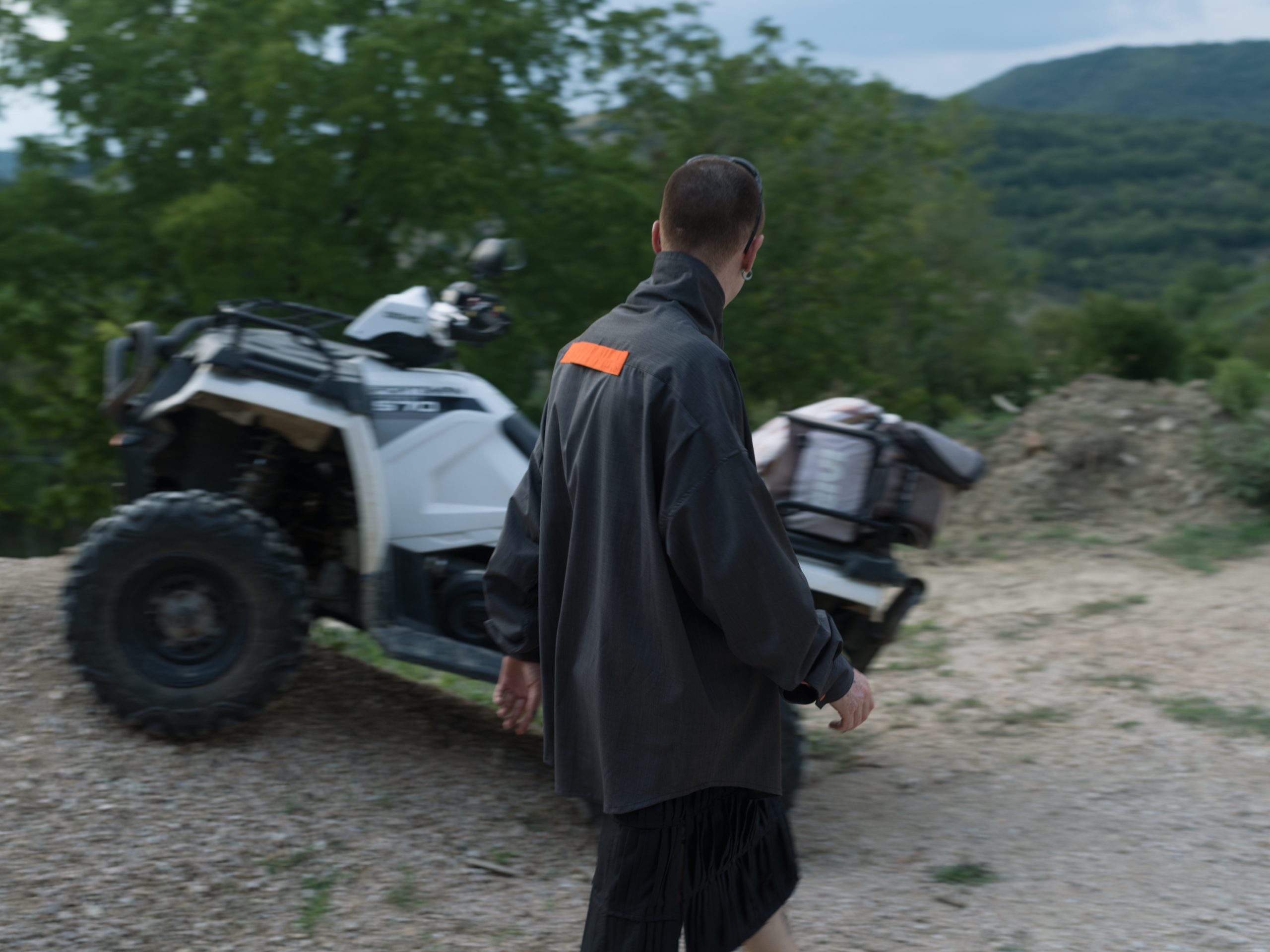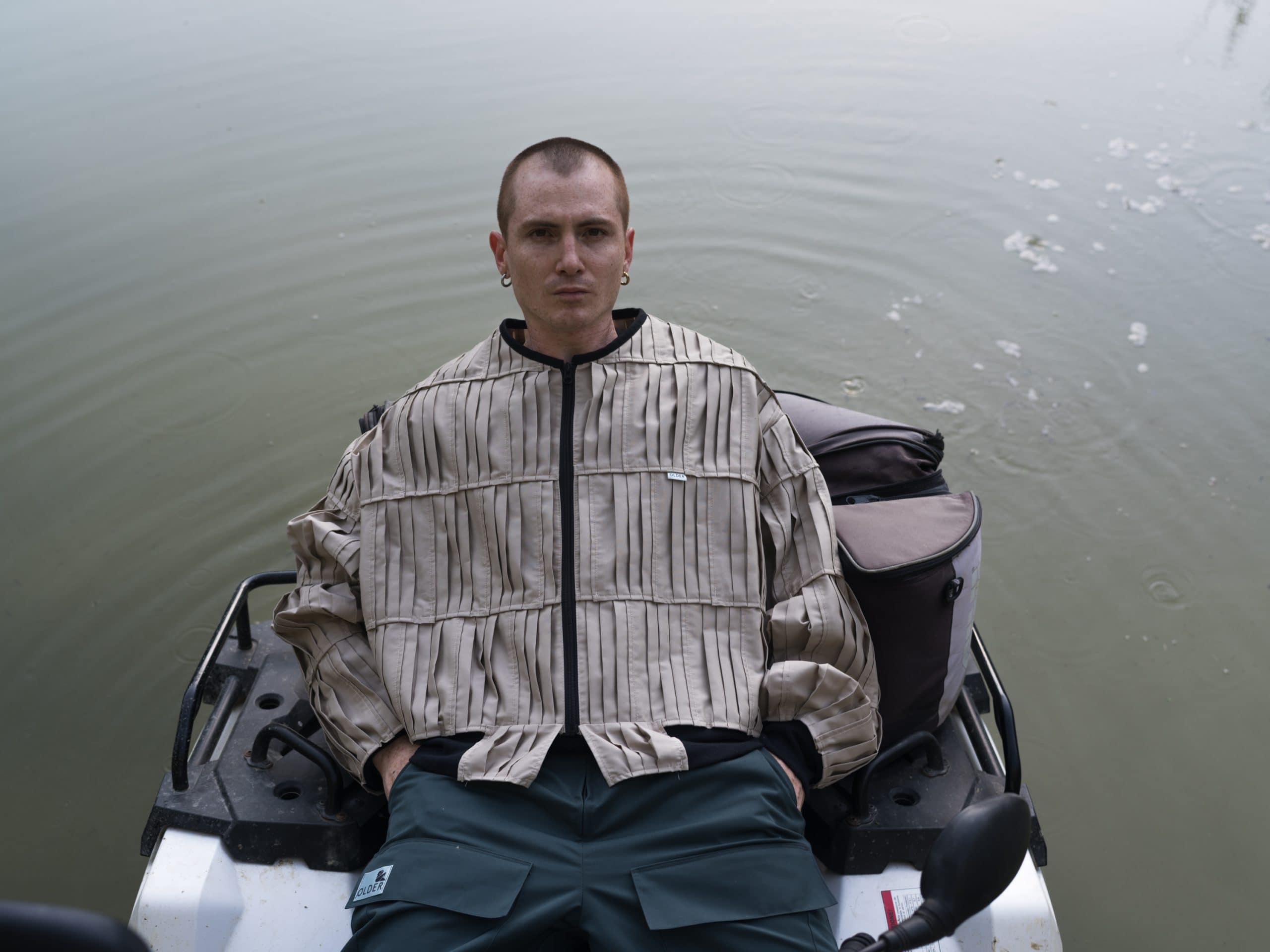 The images merge into a harmonious choral narrative. A serene woman on a boat, sailing through calm waters; isolated figures dancing across fields on agile quads and motorbikes; presences floating between action and anticipation, suspended in perfect balance. Faverio sculpts the scene with grace, capturing wide shots where the subjects do not beg for attention but reveal themselves in all their naturalness. OLDER’s clothes are not exhibited but lived intensely. It is fashion that thrives on movement, adapts with agility, allows itself to be shaped, gets dirty with life. The reference to the tried and tested method in Tokyo is transformed here into something completely new. Where the Japanese metropolis invoked a dialogue with urban density, Umbria evokes a tension that arises from emptiness, distance and regenerating slowness. As Morten Thuesen explains, the inspiration came from observing how everyone reached the same point “by different rural means”. This diversity becomes the beating heart of the series: not a uniform that homogenises, but an inclusive system that celebrates differences. The portraits immersed in lush greenery or on the edges of cultivated fields are particularly evocative, where the human figure appears almost as a brief interruption in the eternal cycle of nature. In these images, Faverio confirms his mastery in navigating between fashion and contemporary art.