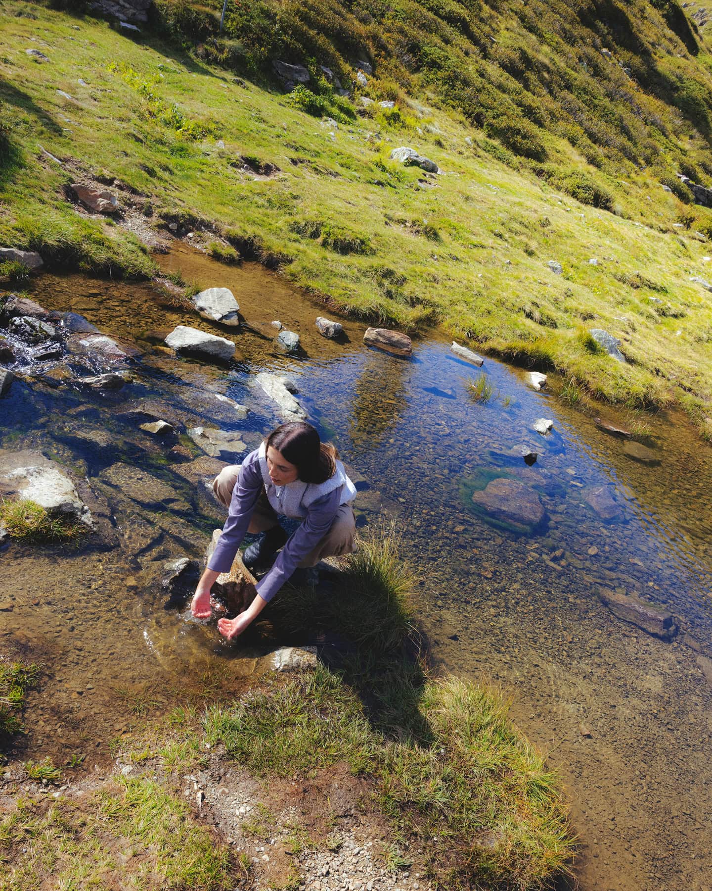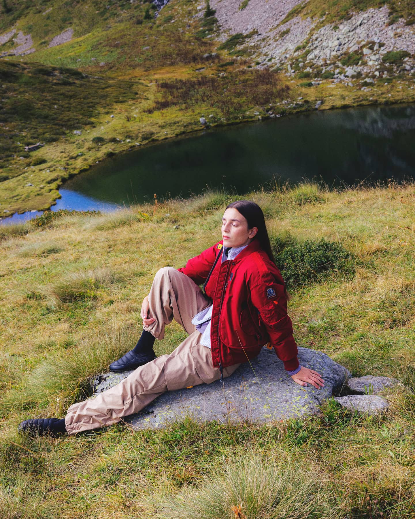 And yet, in this distance, we did not become different. We didn’t leave ourselves behind with the city. What we wear every day, our habits, our essence, our second skin, follows us here. The same jackets that cut through urban nights warm us in the mountain air. The same silhouettes that move through crowded streets belong just as naturally among stone and silence. Continuity is what makes refuge possible: we are not strangers here, but ourselves, simply at rest.